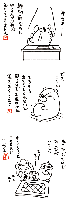 イラストレーター“柏原昇店”が描く二男一女の育児・子育て4コマ漫画。 家族を白くまのキャラクターに差替え、子供の成長、日々の暮らし、ママの乳がんの闘病記やその後の経過について時に真面目に時に楽しく、マンガで描いています。 現在は無事ママンの乳がん闘病を乗り越え、末っ子アリッサを中心とした「おてんば娘編」に突入中。乳がんを乗り越え元気にやっている我が家の記録が皆さんのお役に立てれば幸いです。